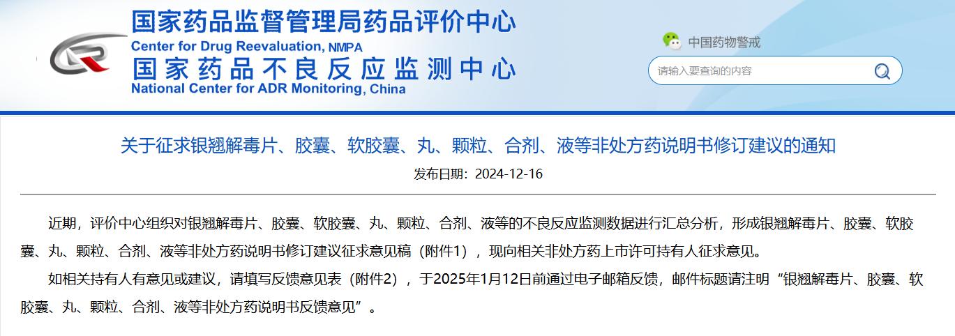 關(guān)于征求銀翹解毒片、膠囊、軟膠囊、丸、顆粒、合劑、液等非處方藥說明書修訂建議的通知