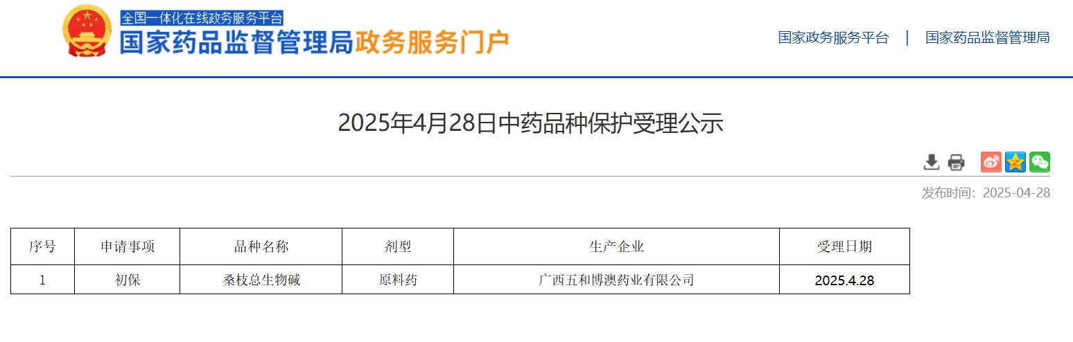 2025年4月28日中藥品種保護(hù)受理公示