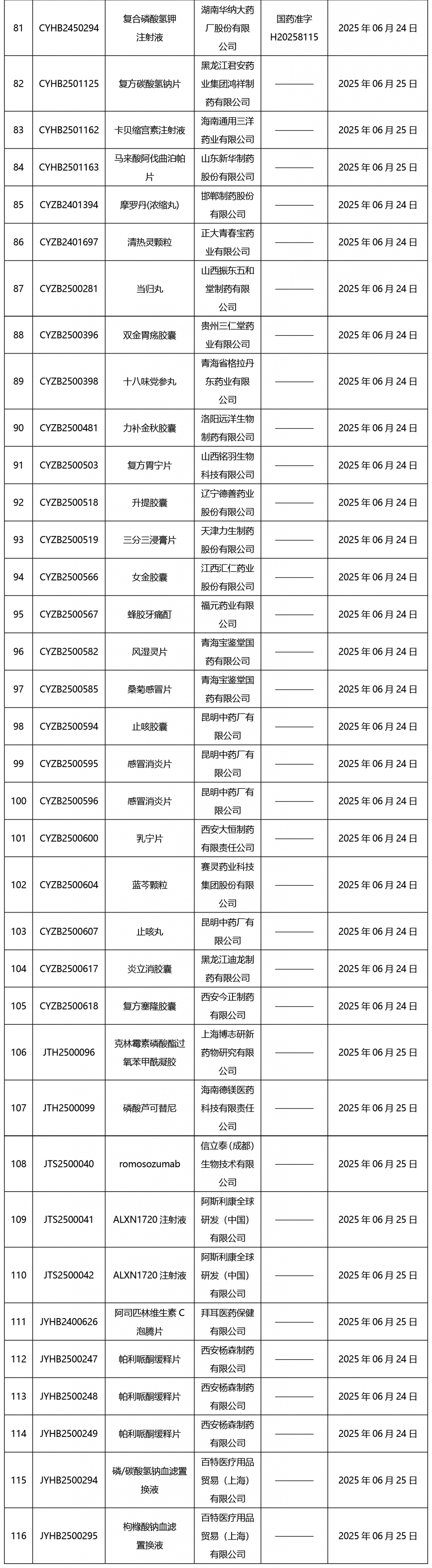 本周(截止到6月27日17:00)共發(fā)布藥品批準(zhǔn)證明文件送達(dá)信息116個(gè)。