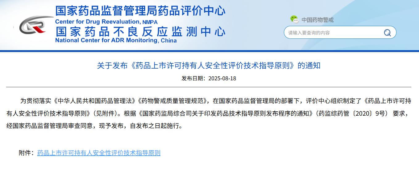 政策法規(guī) || 《藥品上市許可持有人安全性評價技術(shù)指導原則》(附法規(guī)概覽8.18-8.22)