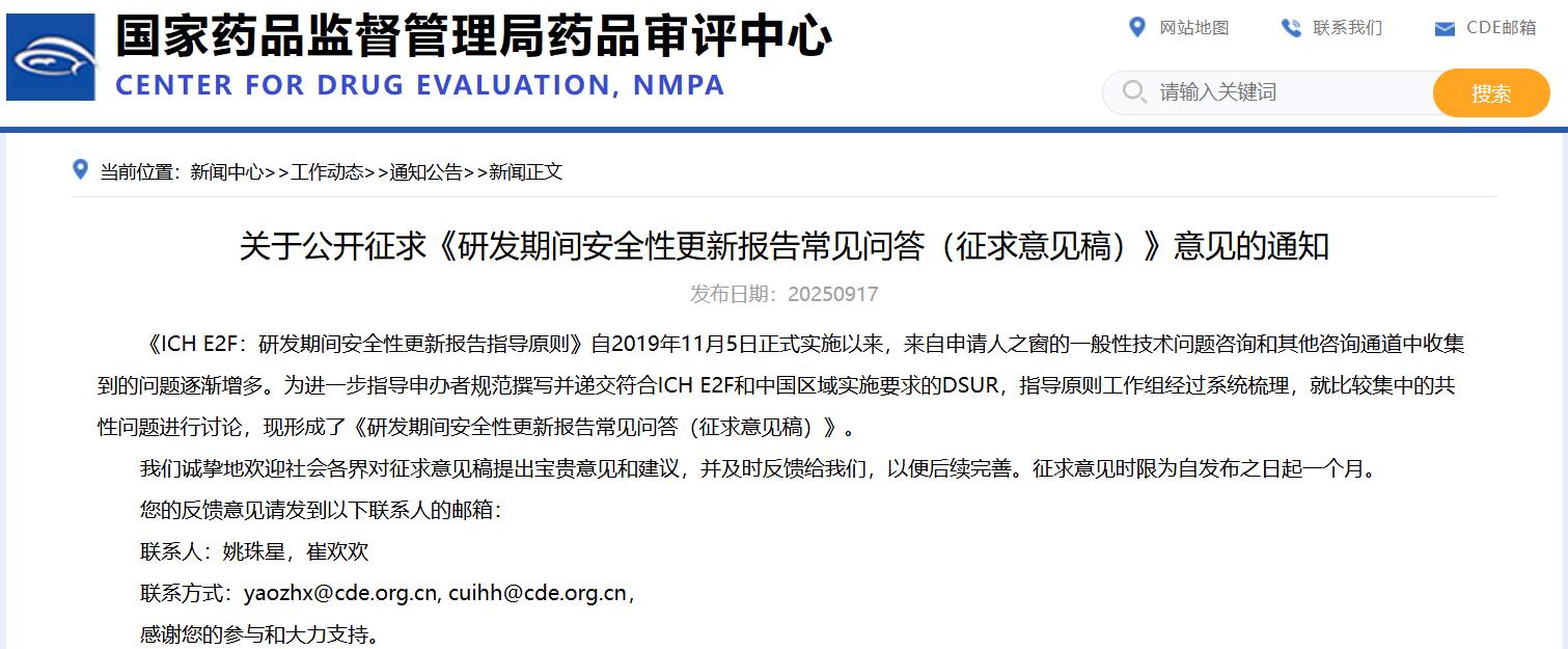 關(guān)于公開征求《研發(fā)期間安全性更新報(bào)告常見問答(征求意見稿)》意見的通知