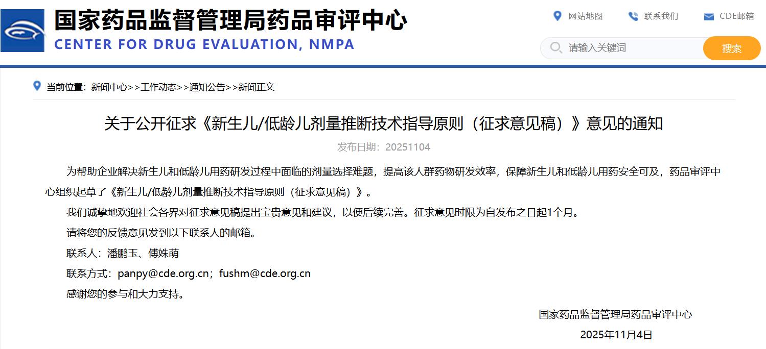 關(guān)于公開征求《新生兒/低齡兒劑量推斷技術(shù)指導(dǎo)原則(征求意見稿)》意見的通知
