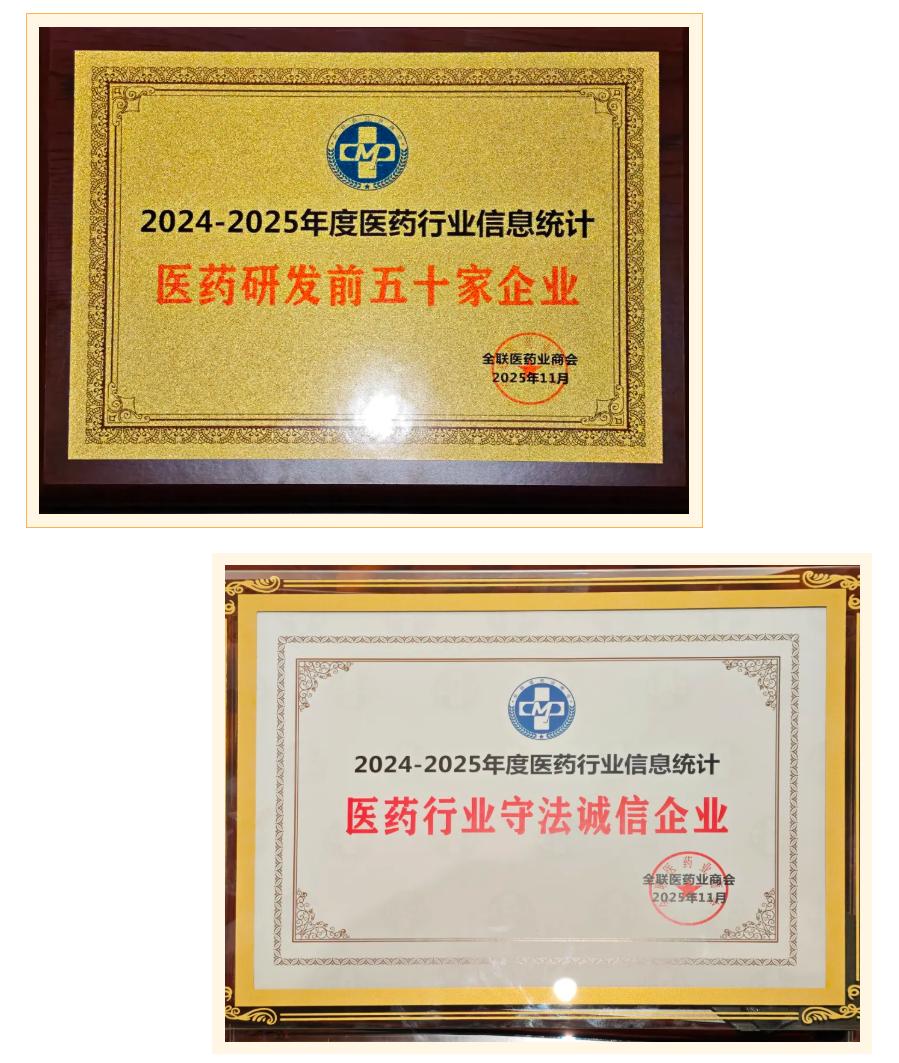 喜報 | 新領先醫(yī)藥攬獲2024-2025年度“醫(yī)藥研發(fā)前五十家企業(yè)”和“醫(yī)藥行業(yè)守法誠信企業(yè)”雙項榮譽