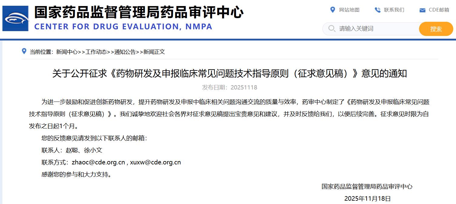 關(guān)于公開征求《藥物研發(fā)及申報(bào)臨床常見(jiàn)問(wèn)題技術(shù)指導(dǎo)原則(征求意見(jiàn)稿)》意見(jiàn)的通知