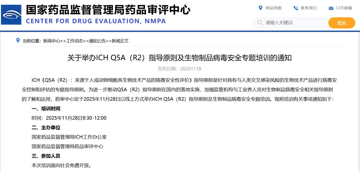 關(guān)于舉辦ICH Q5A(R2)指導(dǎo)原則及生物制品病毒安全專題培訓(xùn)的通知