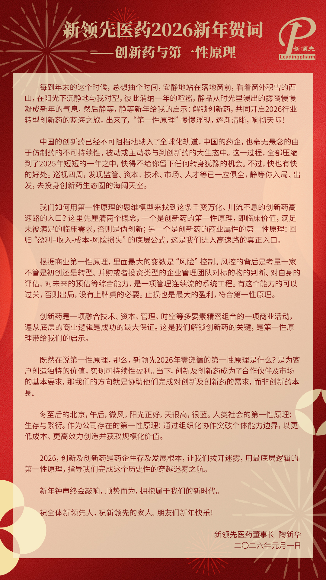 新領(lǐng)先醫(yī)藥2026新年賀詞——?jiǎng)?chuàng)新藥與第一性原理