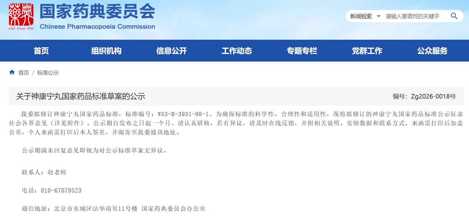 關(guān)于神康寧丸國(guó)家藥品標(biāo)準(zhǔn)草案的公示