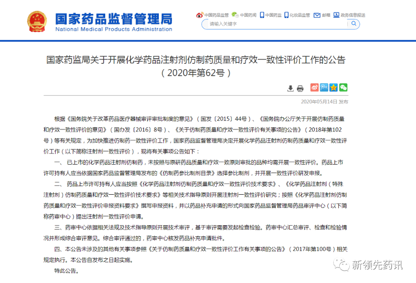 重磅:三大征求意見一夕轉正, 化學藥品注射劑一致性評價正式開始!