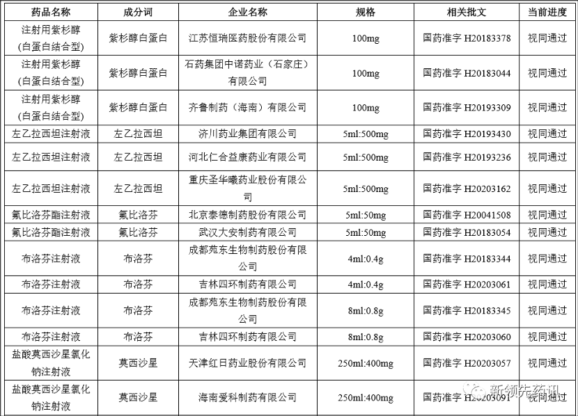 附件:化學藥品注射劑一致性評價進度