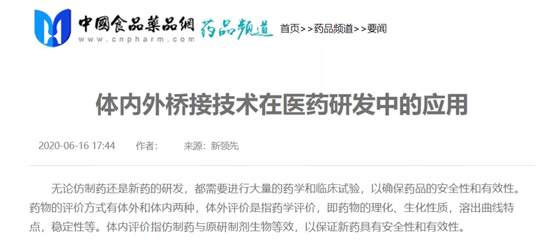 體內(nèi)外橋接旨將體外評價與體內(nèi)評價,通過建立模型,將兩者建立相關(guān)性。采用體外研究結(jié)果,通過模型,預(yù)測體內(nèi)的藥動學和藥效學參數(shù)。實現(xiàn)藥學研究與臨床試驗的對接,提高臨床試驗的成功率,縮短藥物研發(fā)時間,為制藥企業(yè)節(jié)約藥物研發(fā)成本。