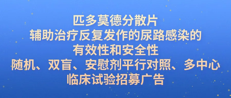 項(xiàng)目名稱:匹多莫德分散片輔助治療反復(fù)發(fā)作的尿路感染的有效性和安全性隨機(jī)、雙盲、安慰劑平行對照、多中心臨床試驗(yàn)