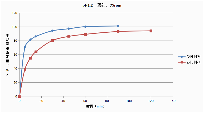 溶出條件:籃法、75轉(zhuǎn)、900ml介質(zhì)體積