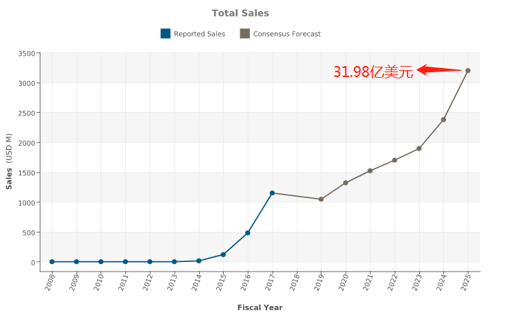 恩格列凈憑借顯著的降糖效果以及心血管獲益,自上市以來,銷售額一路上漲。據(jù)原研公司2019年財報顯示,恩格列凈2019年的全球銷售額達到21.52歐元。據(jù)cortellis預(yù)測,恩格列凈2025年的全球銷售額預(yù)計將達31.98億美元,有望成為全球最暢銷的SGLT-2抑制劑,同時也是全球第三大暢銷的降糖藥物。