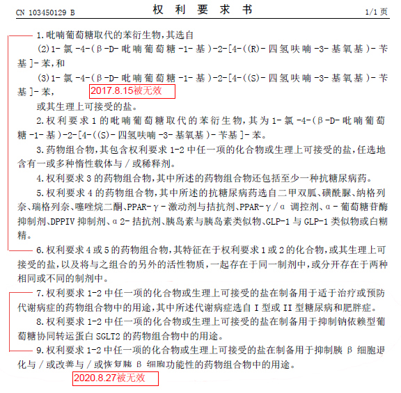 ?分案4:129B權(quán)1通過化學通用名的形式保護恩格列凈及其藥用鹽,從權(quán)3-7對藥物組合物、用途進一步做了限定;