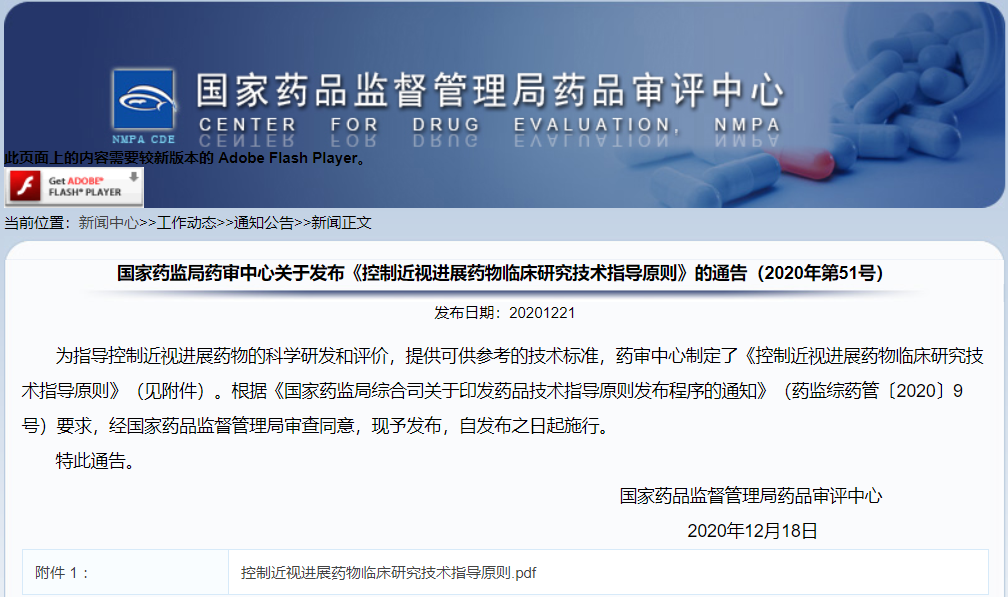 關(guān)于發(fā)布《控制近視進(jìn)展藥物臨床研究技術(shù)指導(dǎo)原則》的通告(2020年第51號(hào))
