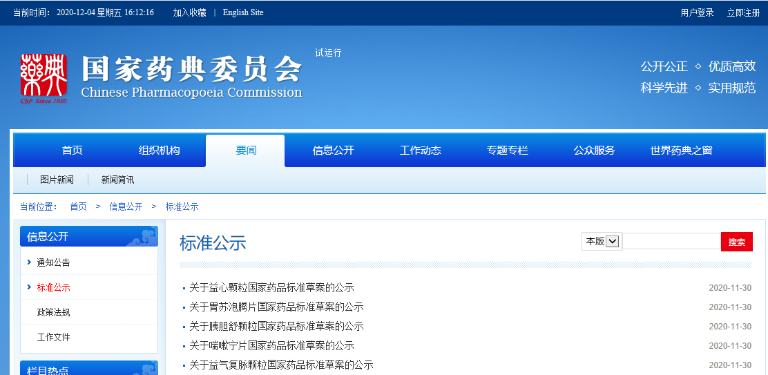本周益心顆粒、胃蘇泡騰片、胰膽舒顆粒、咳嗽寧片、益氣復(fù)脈顆粒國家藥品標(biāo)準(zhǔn)草案公示。
