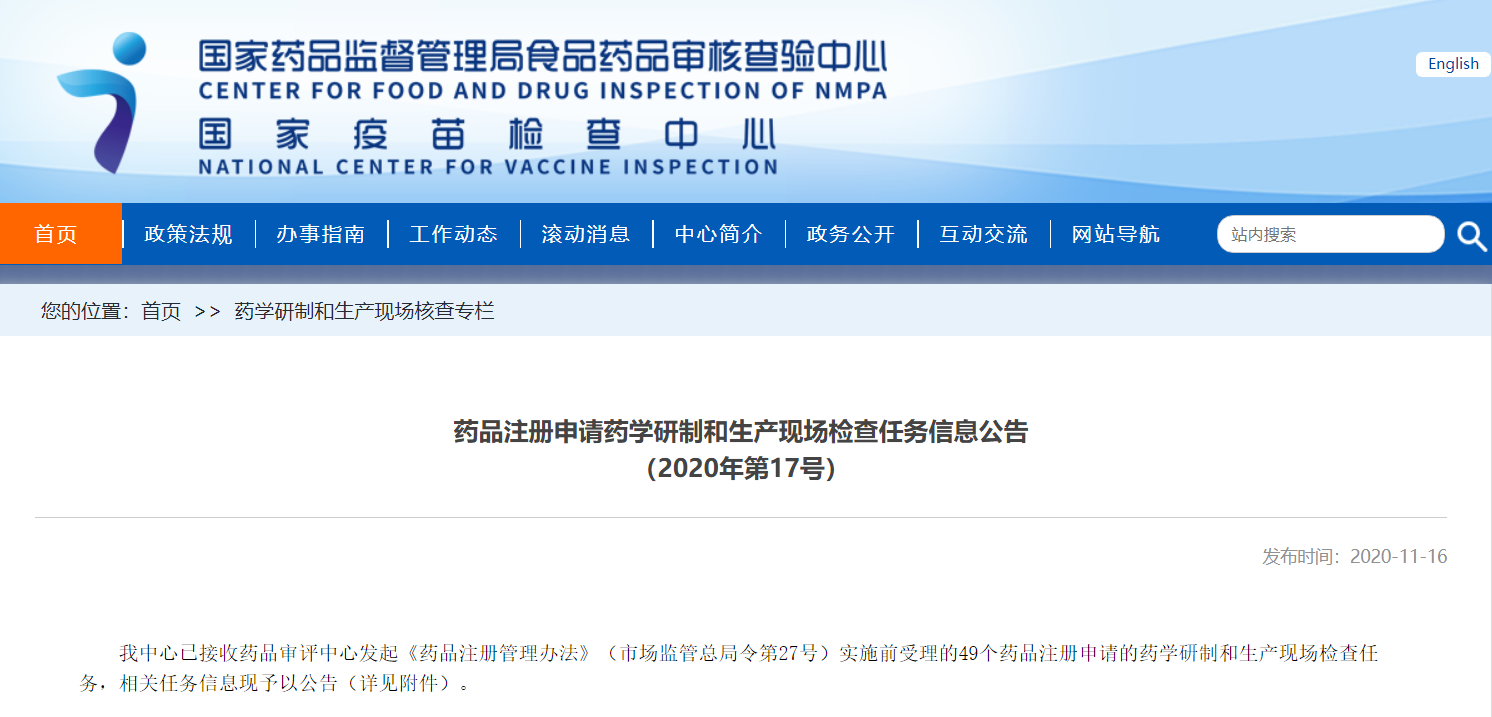 藥品注冊(cè)申請(qǐng)藥學(xué)研制和生產(chǎn)現(xiàn)場(chǎng)檢查任務(wù)信息公告