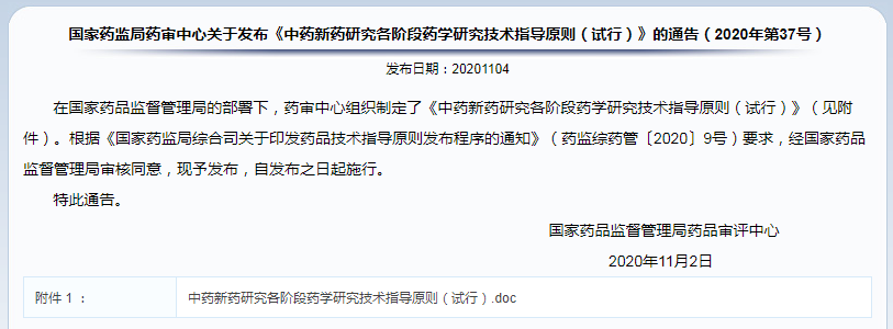 《中藥新藥研究各階段藥學(xué)研究技術(shù)指導(dǎo)原則(試行)》(2020年第37號(hào))