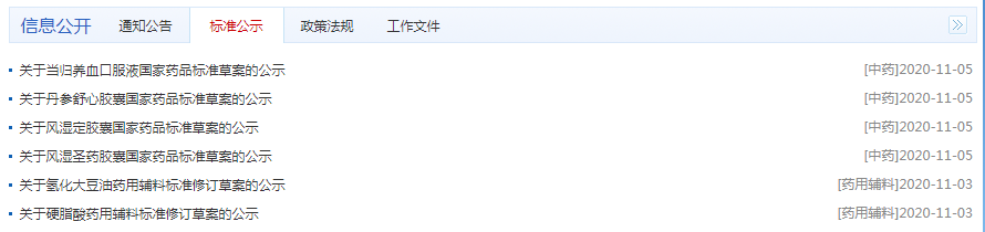 關(guān)于當(dāng)歸養(yǎng)血口服液、丹參舒心膠囊、風(fēng)濕定膠囊、風(fēng)濕圣藥膠囊、氫化大豆油、硬脂酸,藥品/輔料標(biāo)準(zhǔn)修訂草案的公示。