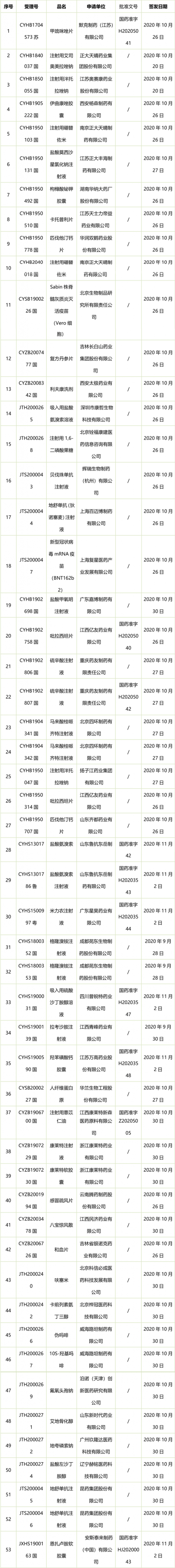 本周藥品批準(zhǔn)證明文件公告情況