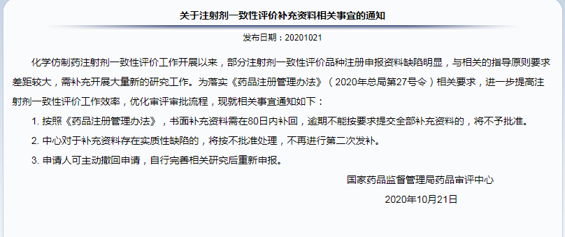 ?  關(guān)于注射劑一致性評(píng)價(jià)補(bǔ)充資料相關(guān)事宜的通知