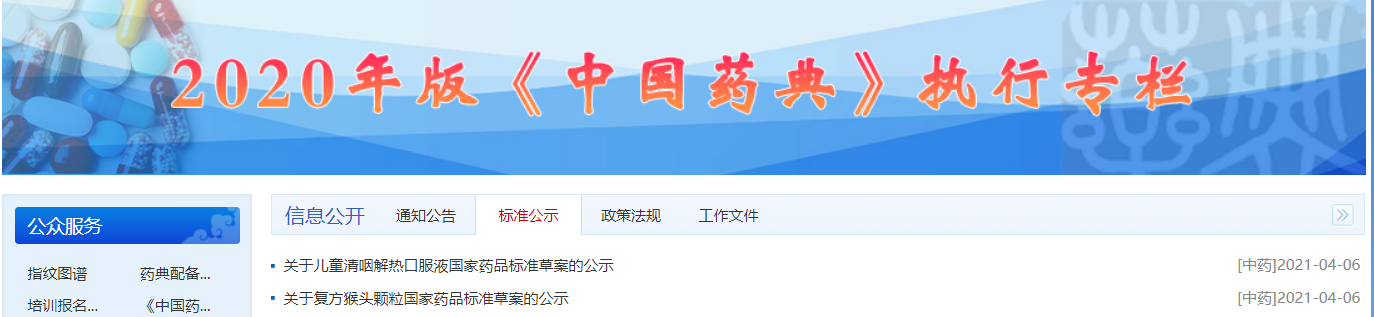 本周兒童清咽解熱口服液、復(fù)方猴頭顆粒國(guó)家藥品標(biāo)準(zhǔn)草案公示。