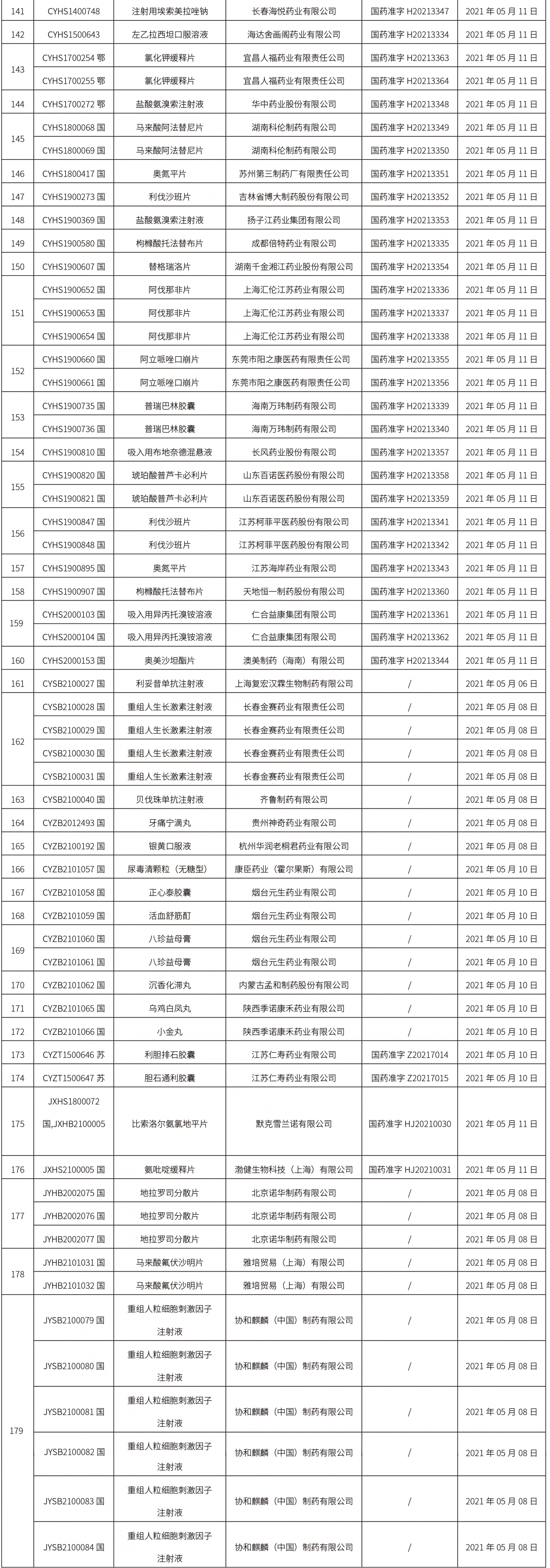 本周共計179批取得藥品批準證明文件,其中一致性評價品種34個。