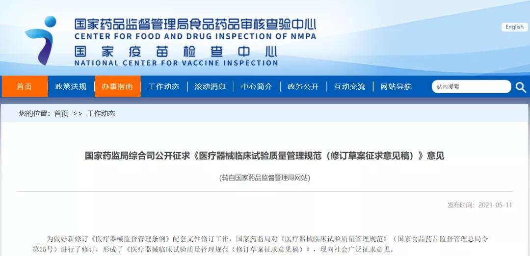 國家藥監(jiān)局綜合司公開征求《醫(yī)療器械臨床試驗質(zhì)量管理規(guī)范(修訂草案征求意見稿)》意見