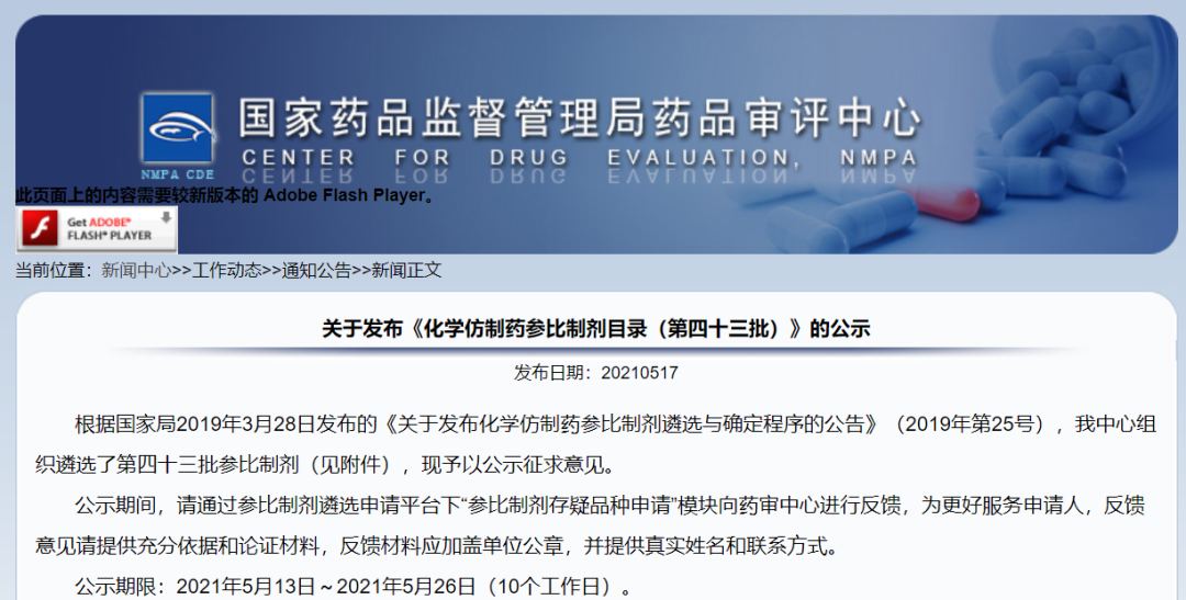 關(guān)于發(fā)布《化學(xué)仿制藥參比制劑目錄(第四十三批)》的公示(征求意見(jiàn)稿)