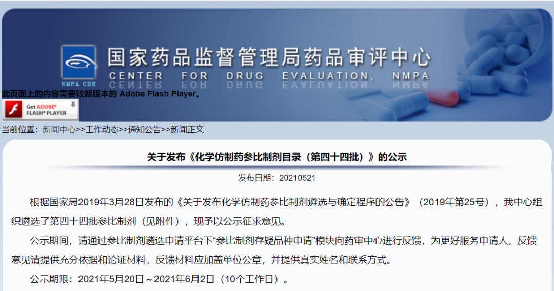 關(guān)于發(fā)布《化學(xué)仿制藥參比制劑目錄(第四十四批)》的公示(征求意見(jiàn)稿)