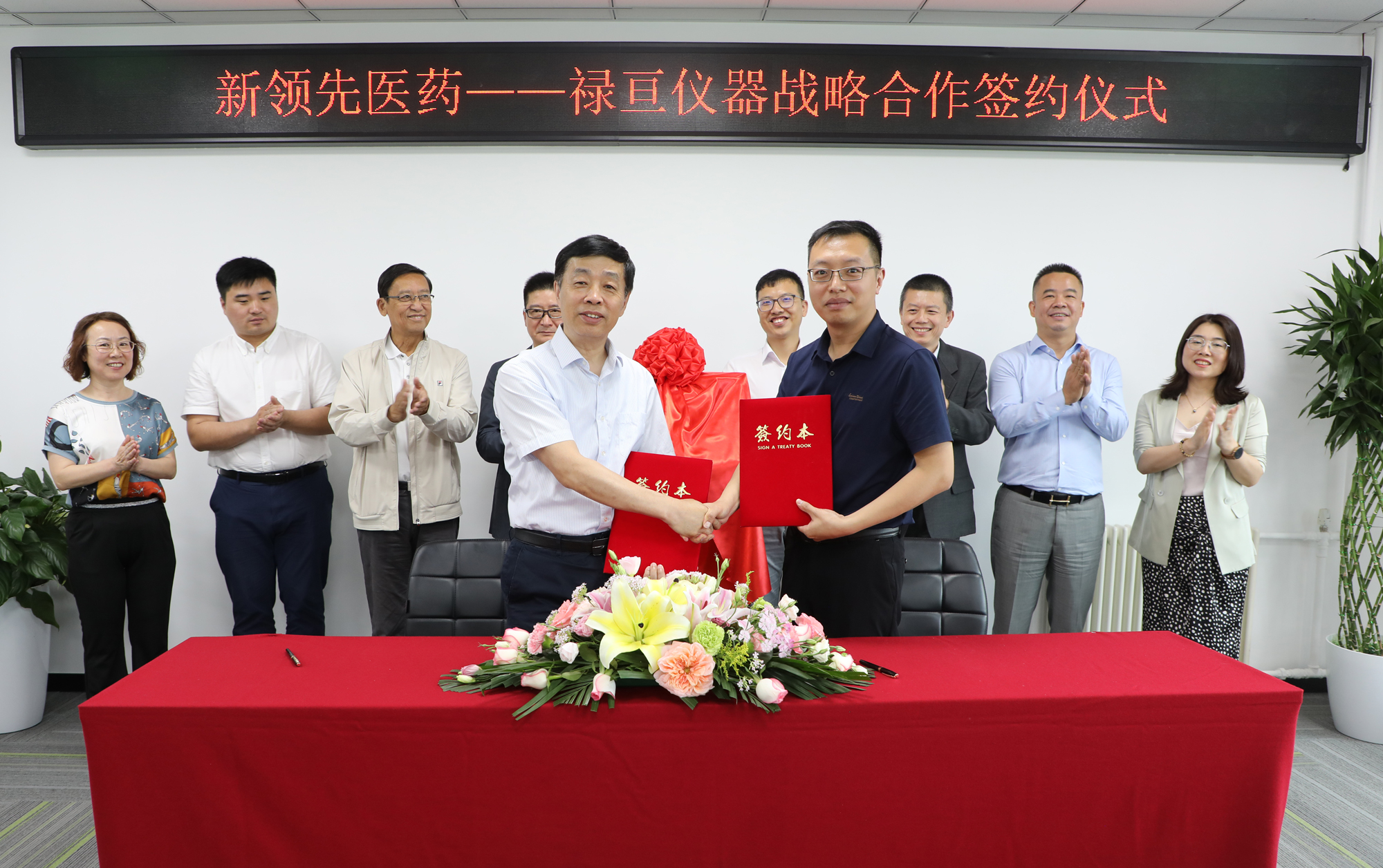 北京新領(lǐng)先醫(yī)藥董事長陶新華先生、總裁高世靜女士、總裁助理顏耀東先生、總裁助理兼技術(shù)市場(chǎng)部總監(jiān)張燕女士、醫(yī)學(xué)部總監(jiān)朱浩彬先生,聯(lián)盛藥業(yè)董事長汪洪峰先生、副總裁李愛琳女士、研發(fā)總監(jiān)劉偉先生、市場(chǎng)部總監(jiān)洪長達(dá)先生,祿亙儀器亞太區(qū)項(xiàng)目總監(jiān)梁曉靜先生、亞太區(qū)商務(wù)總監(jiān)謝開平先生,祿亙儀器代理商——香港路易企業(yè)有限公司運(yùn)營總監(jiān)陳壯志先生、客戶經(jīng)理許學(xué)增先生,以及特邀嘉賓中華全國工商聯(lián)醫(yī)藥業(yè)商會(huì)秘書長王之光先生、中華全國工商聯(lián)醫(yī)藥業(yè)商會(huì)技術(shù)副總監(jiān)呂東紅女士等參加了儀式。