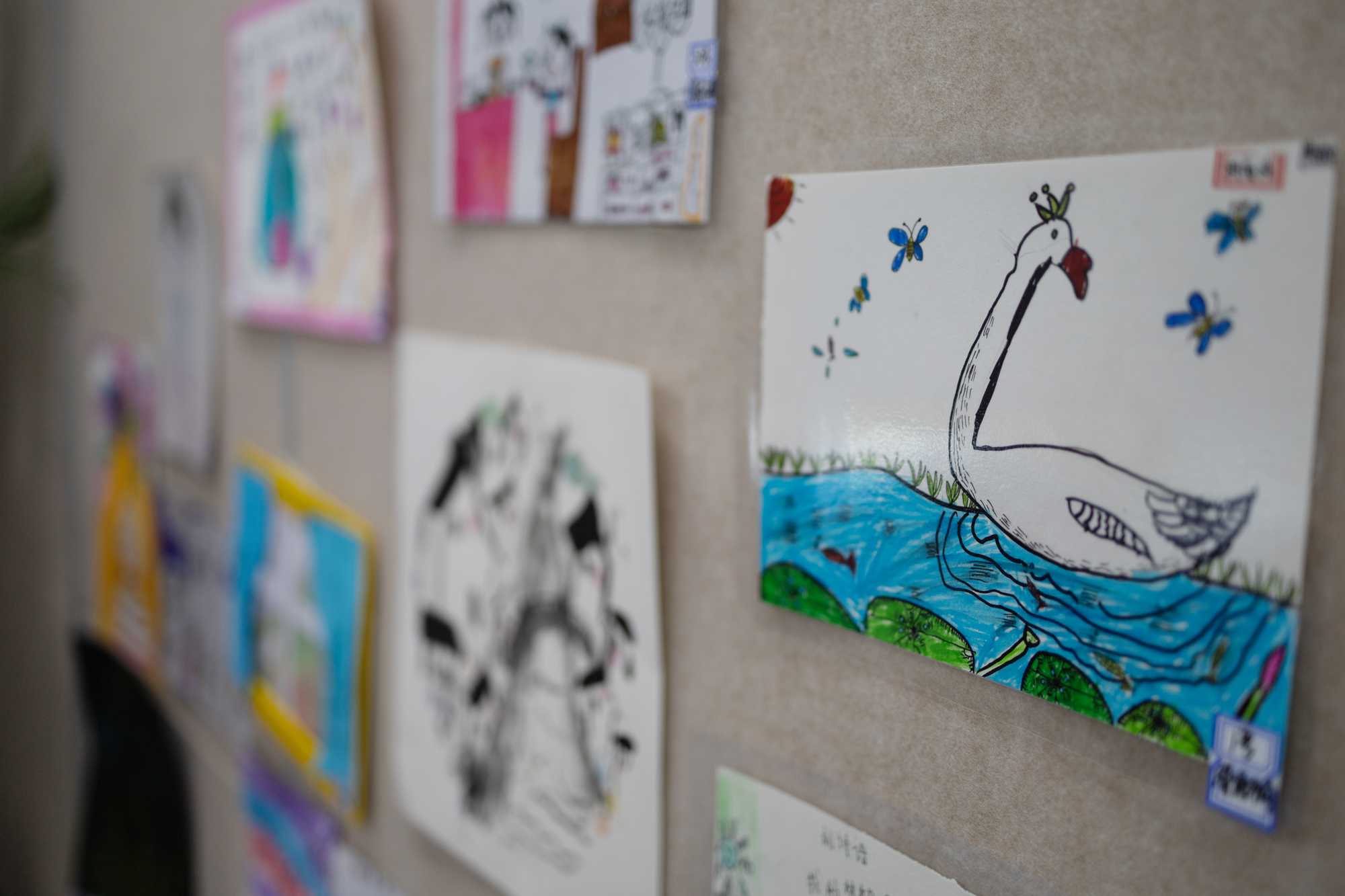 會場的墻面上,張貼了孩子們的繪畫作品,孩子們的畫作有的記錄了迷人的風景,有的描繪了自己長大后的夢想。天馬行空的小畫家們依次向大家介紹了自己的畫作,將自己的心聲與大家分享。