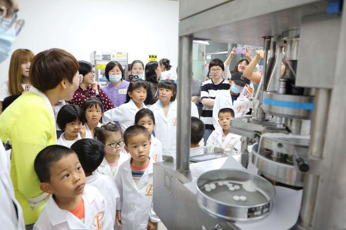 看著神奇的藥水在“會魔法”的研究員手里變幻成各種顏色,孩子們頻頻贊嘆。大家還近距離觀察了奶片的制作,借此了解藥片的制作過程。孩子們說,實驗室的叔叔阿姨們都太厲害了,希望長大后成為像他們一樣的人。