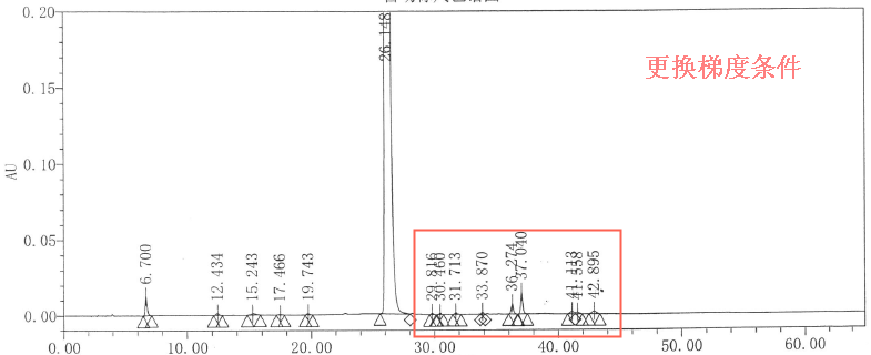 • 延長(zhǎng)梯度洗脫高比例洗脫劑洗脫時(shí)間,防止小極性雜質(zhì)漏檢。