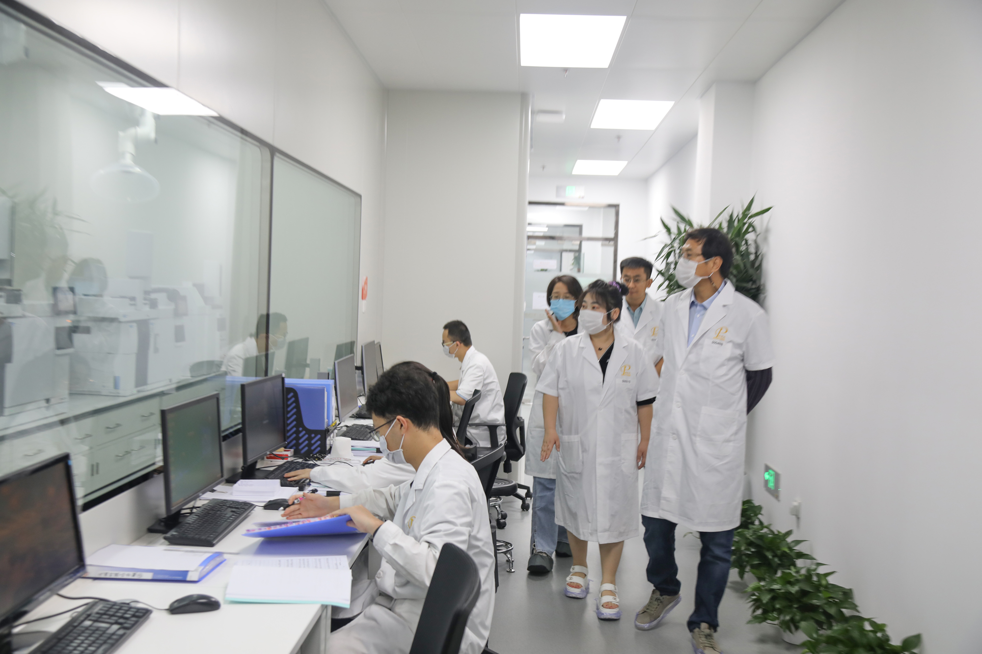 ▲柳亨善董事長參觀新領(lǐng)先實驗室
