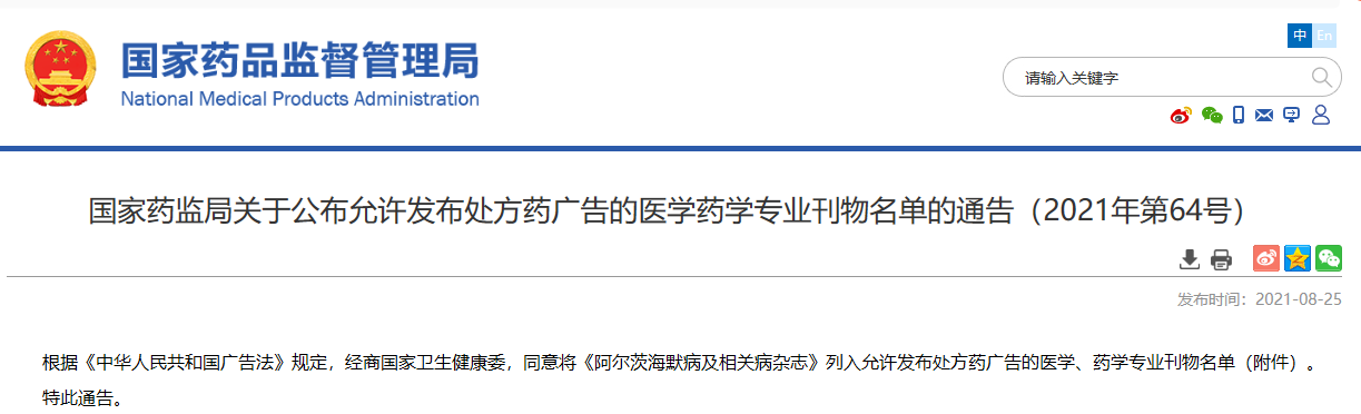 關(guān)于公布允許發(fā)布處方藥廣告的醫(yī)學(xué)藥學(xué)專業(yè)刊物名單的通告(2021年第64號(hào))