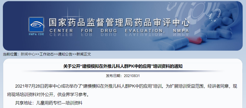 關(guān)于公開(kāi)“建模模擬在外推兒科人群PK中的應(yīng)用”培訓(xùn)資料的通知