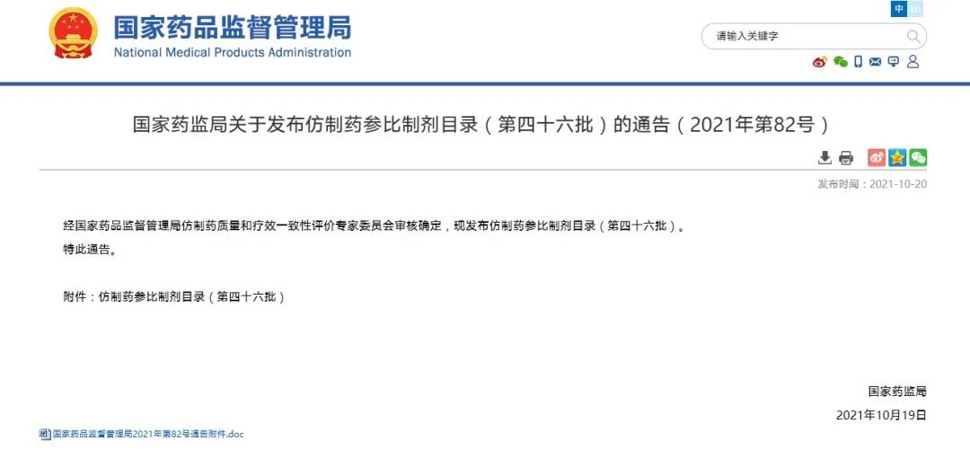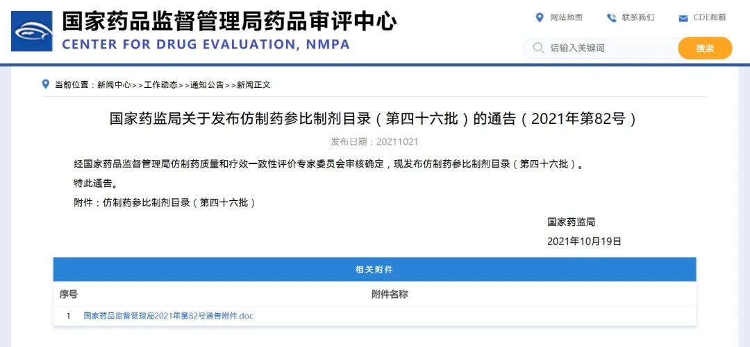 國家藥監(jiān)局關(guān)于發(fā)布仿制藥參比制劑目錄(第四十六批)的通告(2021年第82號)