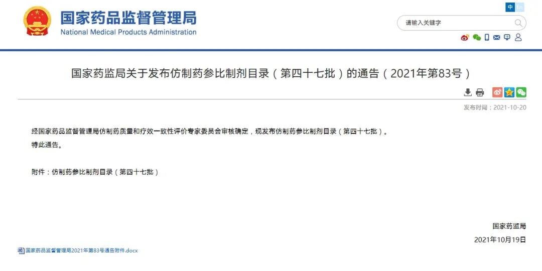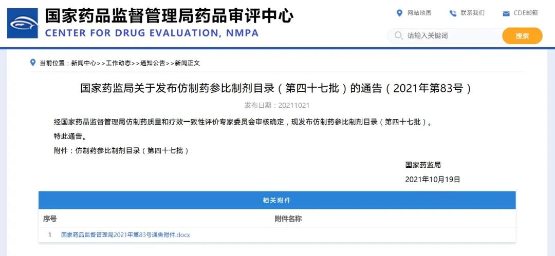 國家藥監(jiān)局關(guān)于發(fā)布仿制藥參比制劑目錄(第四十七批)的通告(2021年第83號)