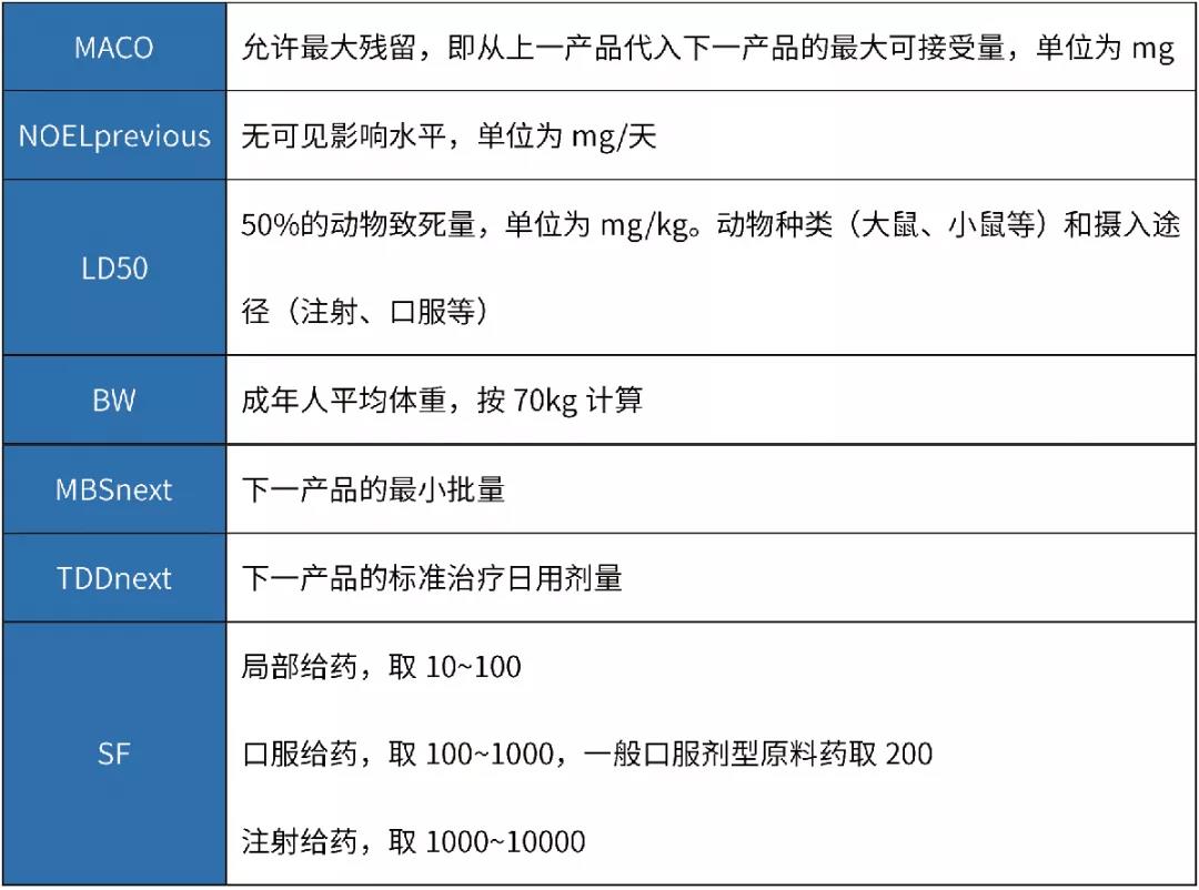 • MACO代表產(chǎn)品A能進(jìn)入到產(chǎn)品B中的最大可接受量(mg);