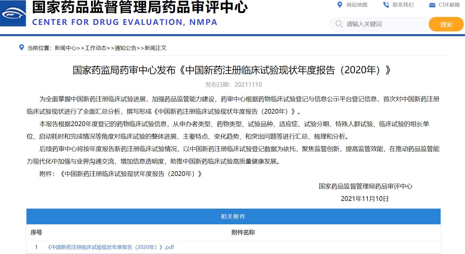 國家藥監(jiān)局藥審中心發(fā)布《中國新藥注冊臨床試驗現(xiàn)狀年度報告(2020年)》