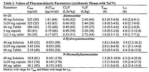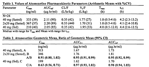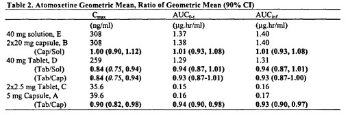 筆者認為FDA綜述對于臨床研究公布的更為詳細,報告中會匯總原研開發(fā)過程中所進行的各種臨床試驗,包括不同劑型的藥動學(xué)研究;處方變化的生物等效性研究;食物對于藥物吸收的影響;不同人群吸收的影響等,下面以托莫西汀膠囊為例,解讀相關(guān)文獻。