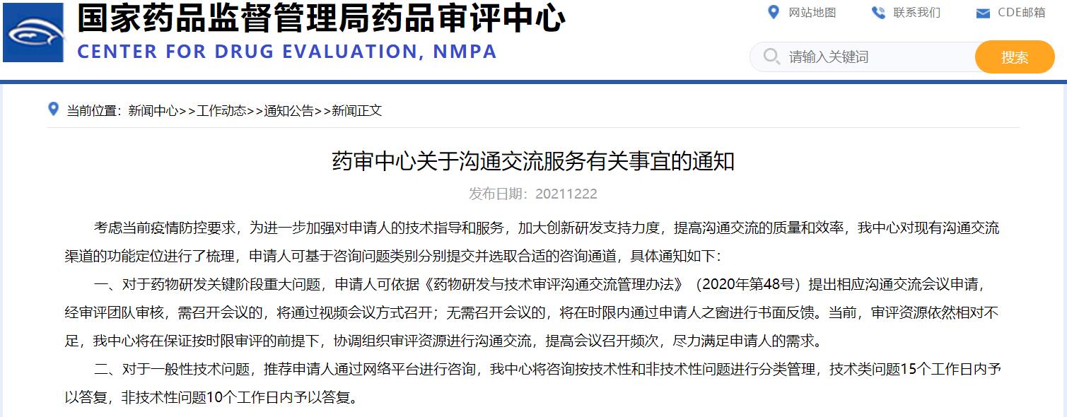 藥審中心關(guān)于溝通交流服務(wù)有關(guān)事宜的通知