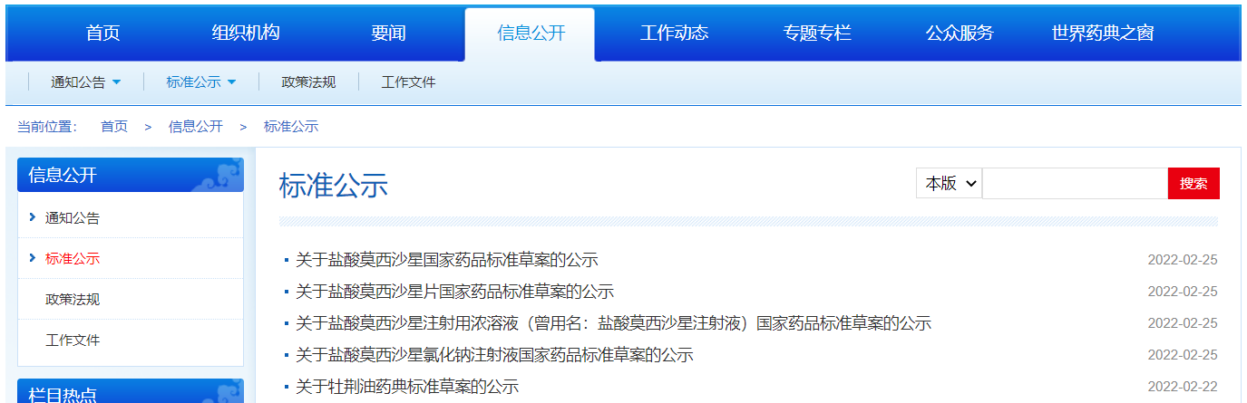 本周鹽酸莫西沙星、鹽酸莫西沙星片、鹽酸莫西沙星注射用濃溶液(曾用名:鹽酸莫西沙星注射液)、鹽酸莫西沙星氯化鈉注射液國家藥品標(biāo)準(zhǔn)草案公示,牡荊油藥典標(biāo)準(zhǔn)草案的公示。