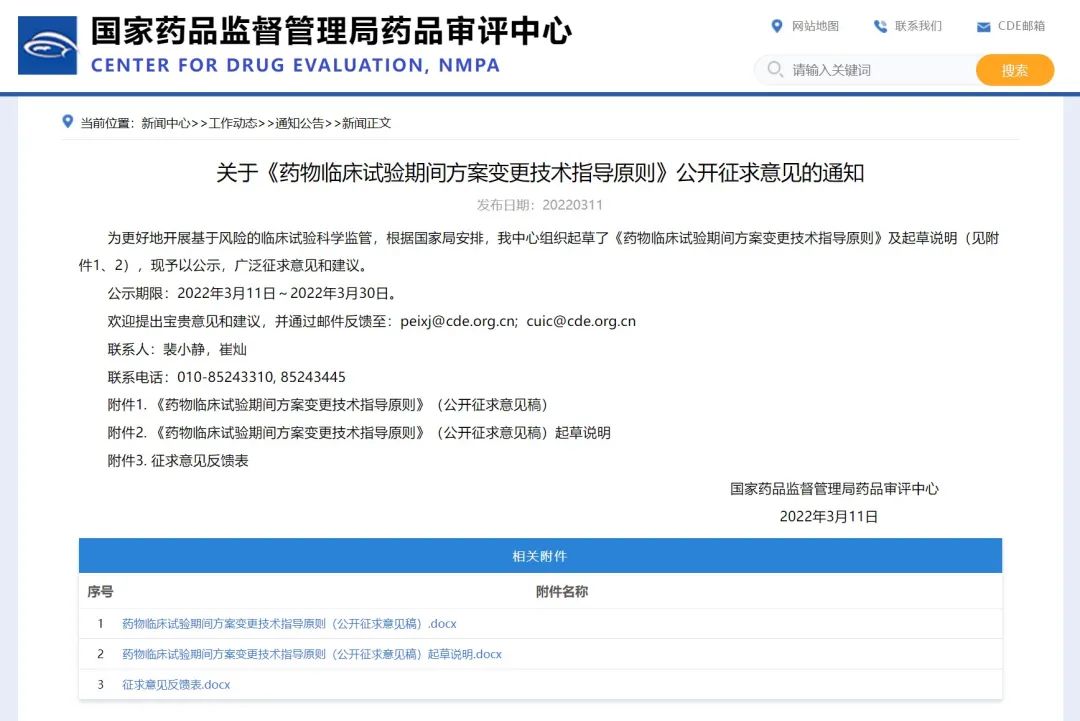關于《藥物臨床試驗期間方案變更技術指導原則》公開征求意見的通知