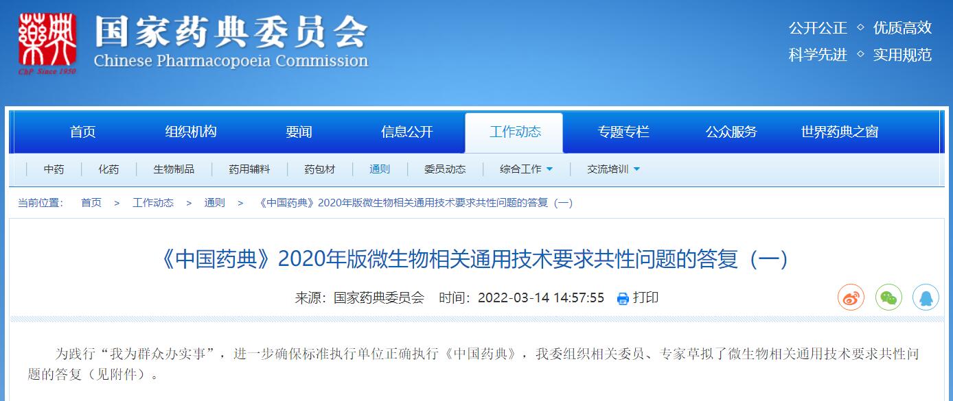 《中國(guó)藥典》2020年版微生物相關(guān)通用技術(shù)要求共性問(wèn)題的答復(fù)(一)