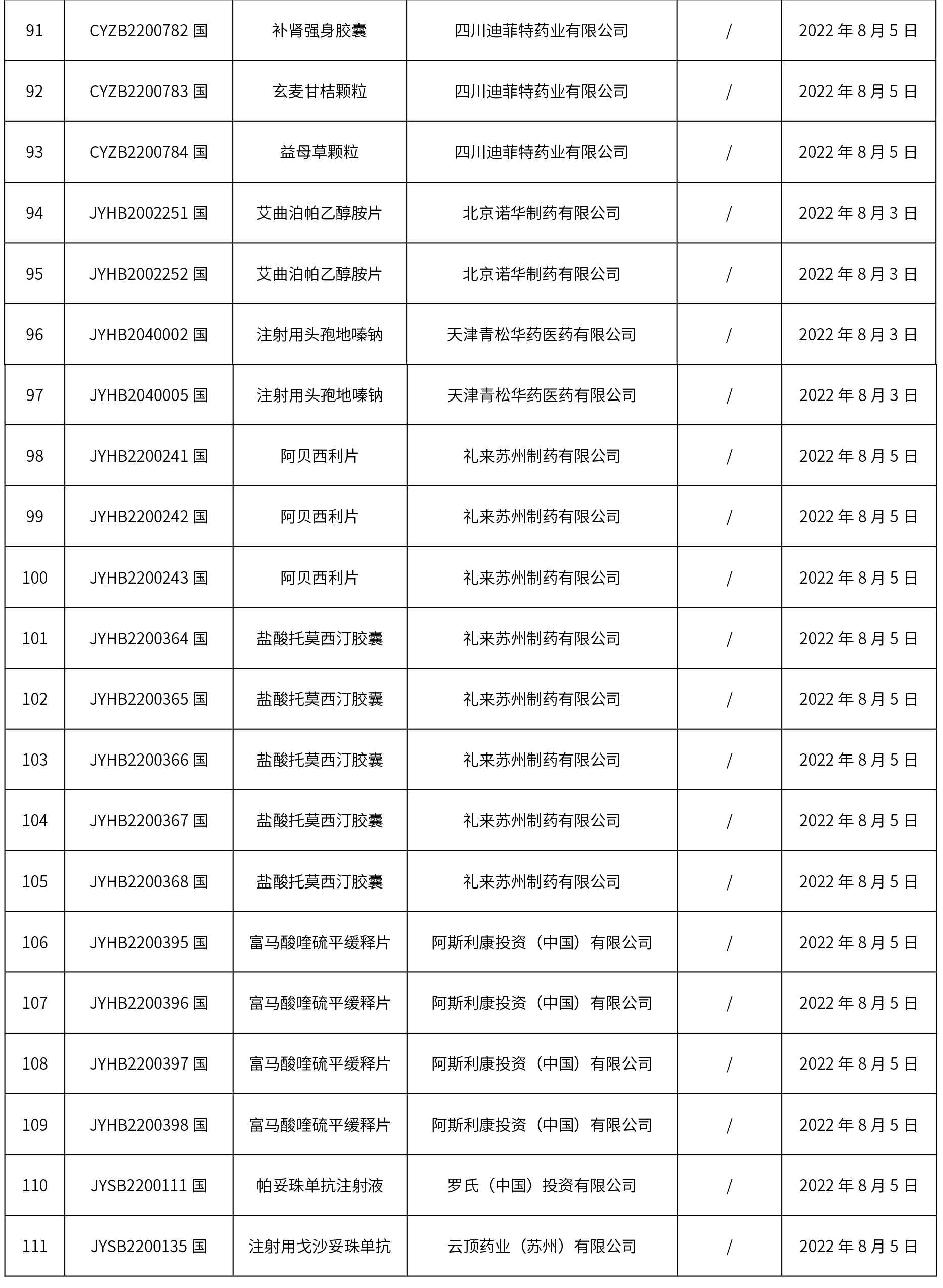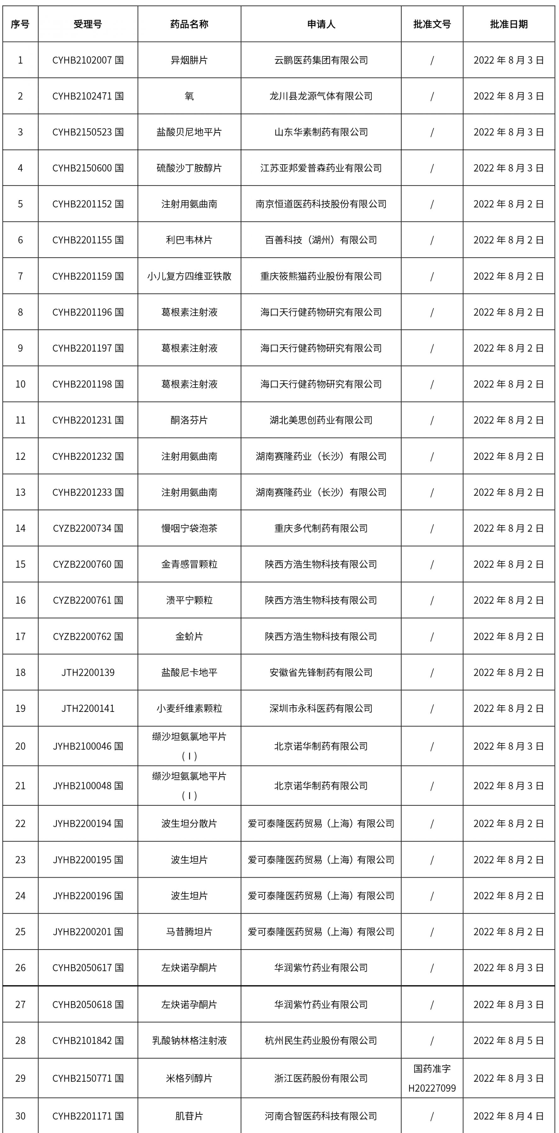 1. 本周(截止到8.12下午4:00)共計111個品種取得藥品批準(zhǔn)證明文件,其中一致性評價品種5個。