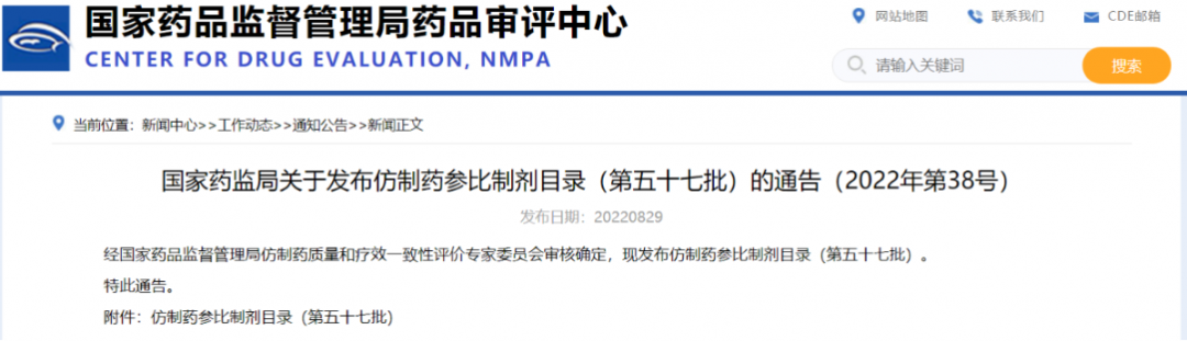 國家藥監(jiān)局關(guān)于發(fā)布仿制藥參比制劑目錄(第五十七批)的通告(2022年第38號(hào))