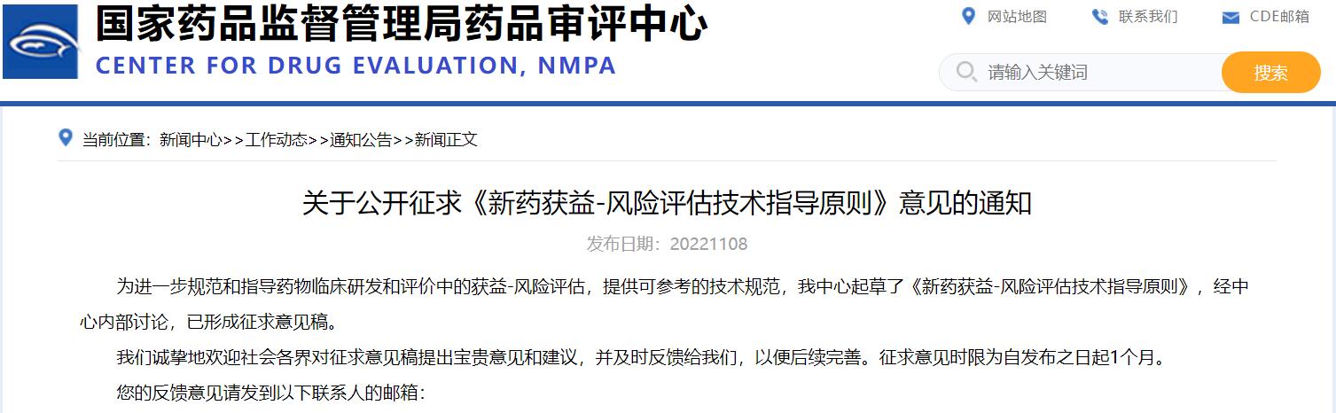 關(guān)于公開征求《新藥獲益-風(fēng)險(xiǎn)評(píng)估技術(shù)指導(dǎo)原則》意見的通知