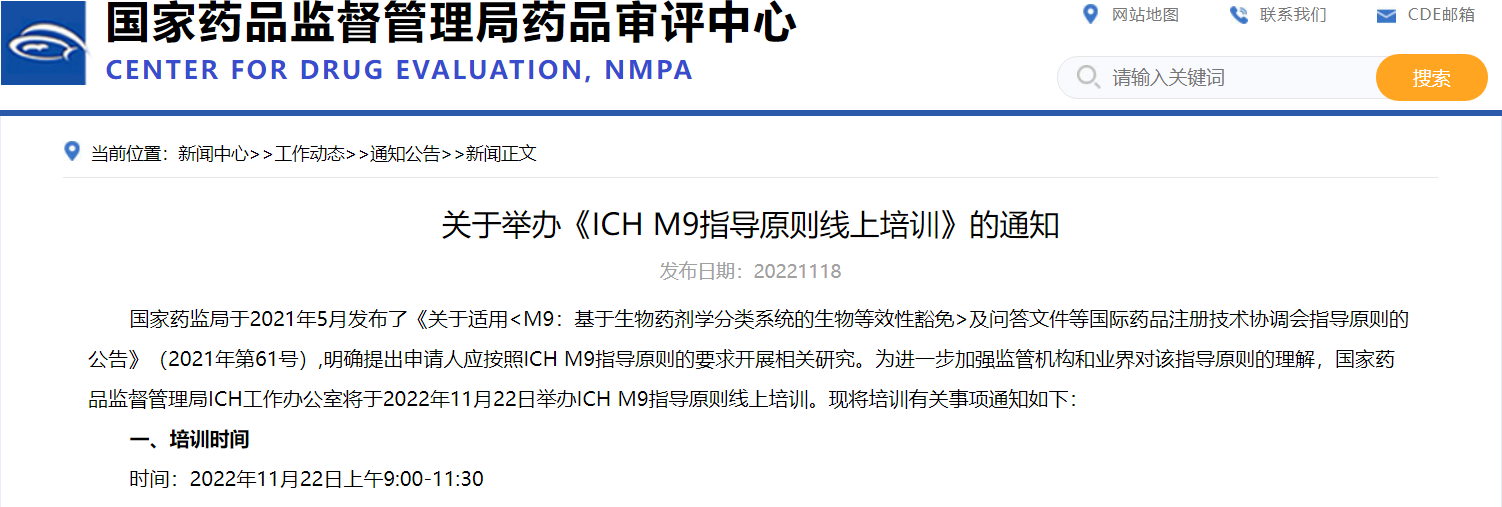 關(guān)于舉辦《ICH M9指導(dǎo)原則線上培訓(xùn)》的通知